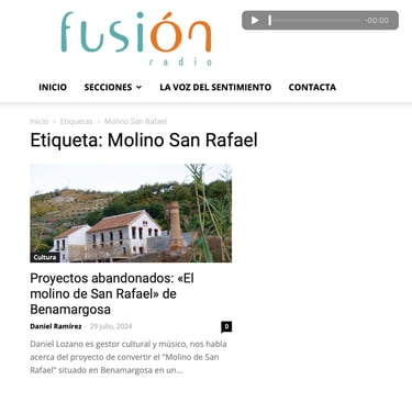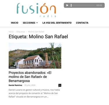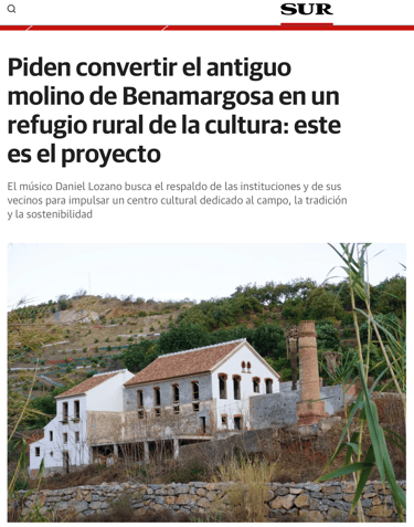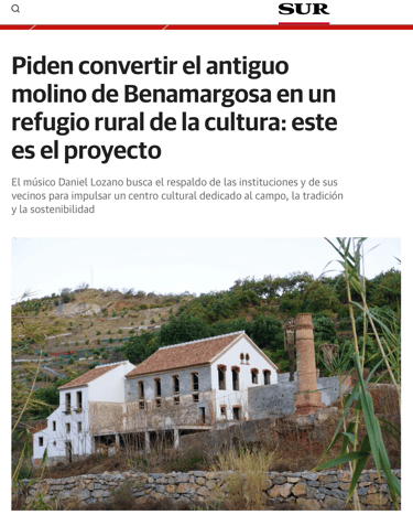 El Molino de San Rafael es un proyecto que busca transformar un antiguo molino del S.XIX en Benamargosa en un refugio rural y espacio cultural. La idea es rehabilitar este espacio histórico para que funcione como un lugar de encuentro artístico y social, preservando su valor patrimonial y revitalizando la vida cultural en la zona.